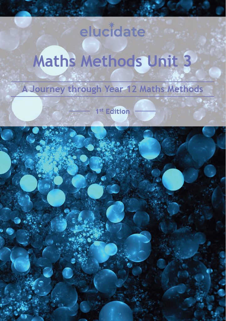 Our Unit 3 Maths Methods textbook is a 231 page textbook that covers: Differentiation, Integration, Discrete Random Variables and Binomial Distributions. The proceeds from every two books sold are used to produce and donate a third textbook for a student who would benefit from the same support.